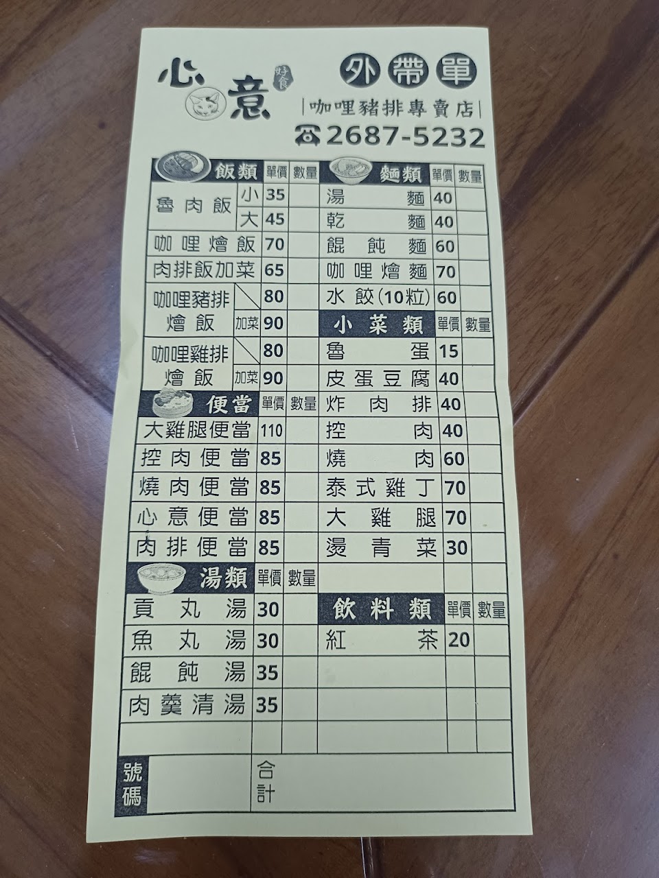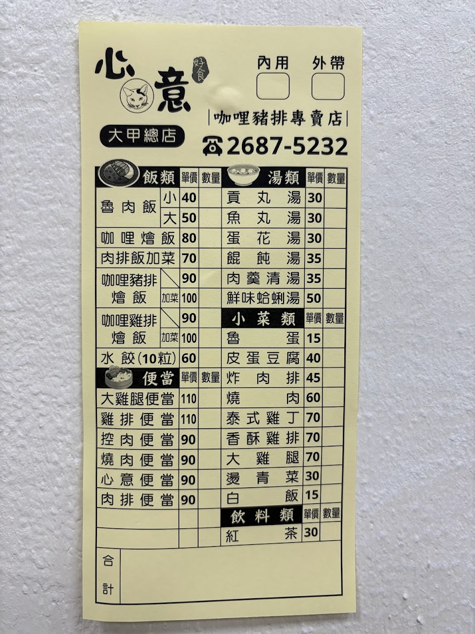 2024最新在地推薦餐廳的菜單_心意咖哩豬排大甲店的菜單、圖片