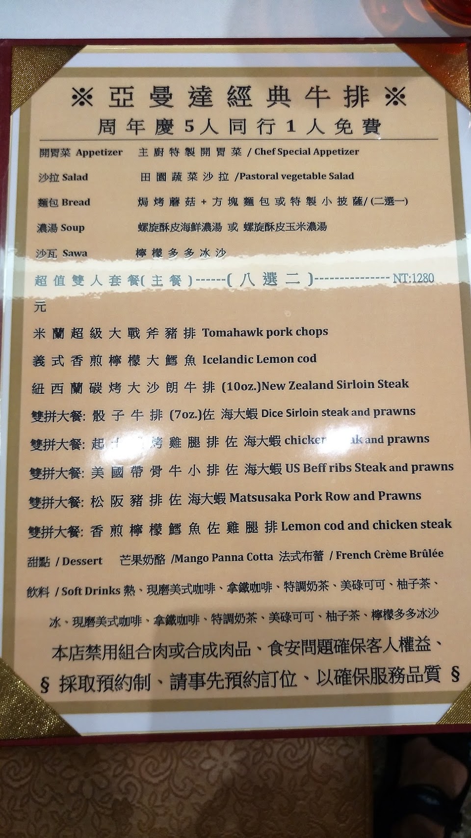 2024最新在地推薦餐廳的菜單_亞曼達牛排餐廳的菜單、圖片