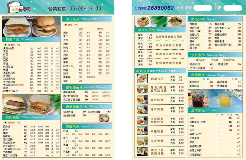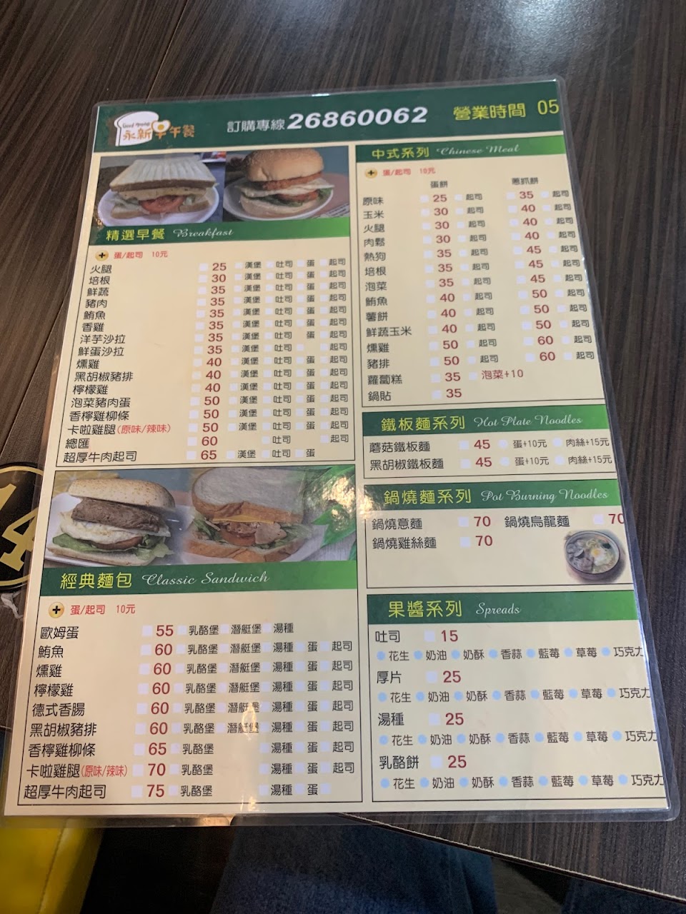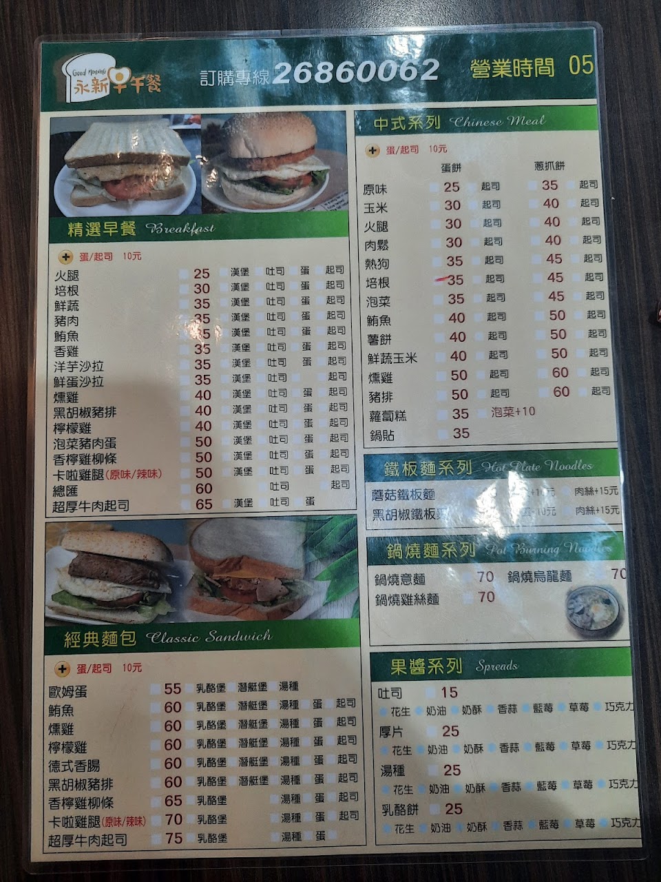 2024最新在地推薦餐廳的菜單_永新早午餐的菜單、圖片