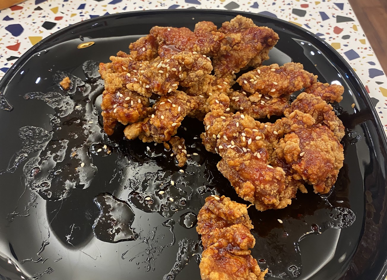 韓式炸雞外皮酥脆軟嫩多汁,烤肉套餐給的份量也很剛好,小菜和白飯都無限續,重點是現在有活動,老闆說加line留言「中華隊加油」,一連三天送起司披薩?!起司披薩淋上香甜蜂蜜,薄皮酥脆,是店裡的一大招牌!