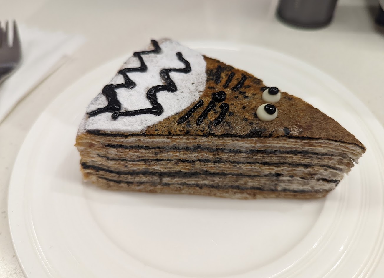 千層蛋糕有少見的花生口味,芝麻口味上還有可愛的卡通圖案,蛋糕的香氣都很足夠,卻不會很甜,推薦喜愛千層的人來嚐鮮~