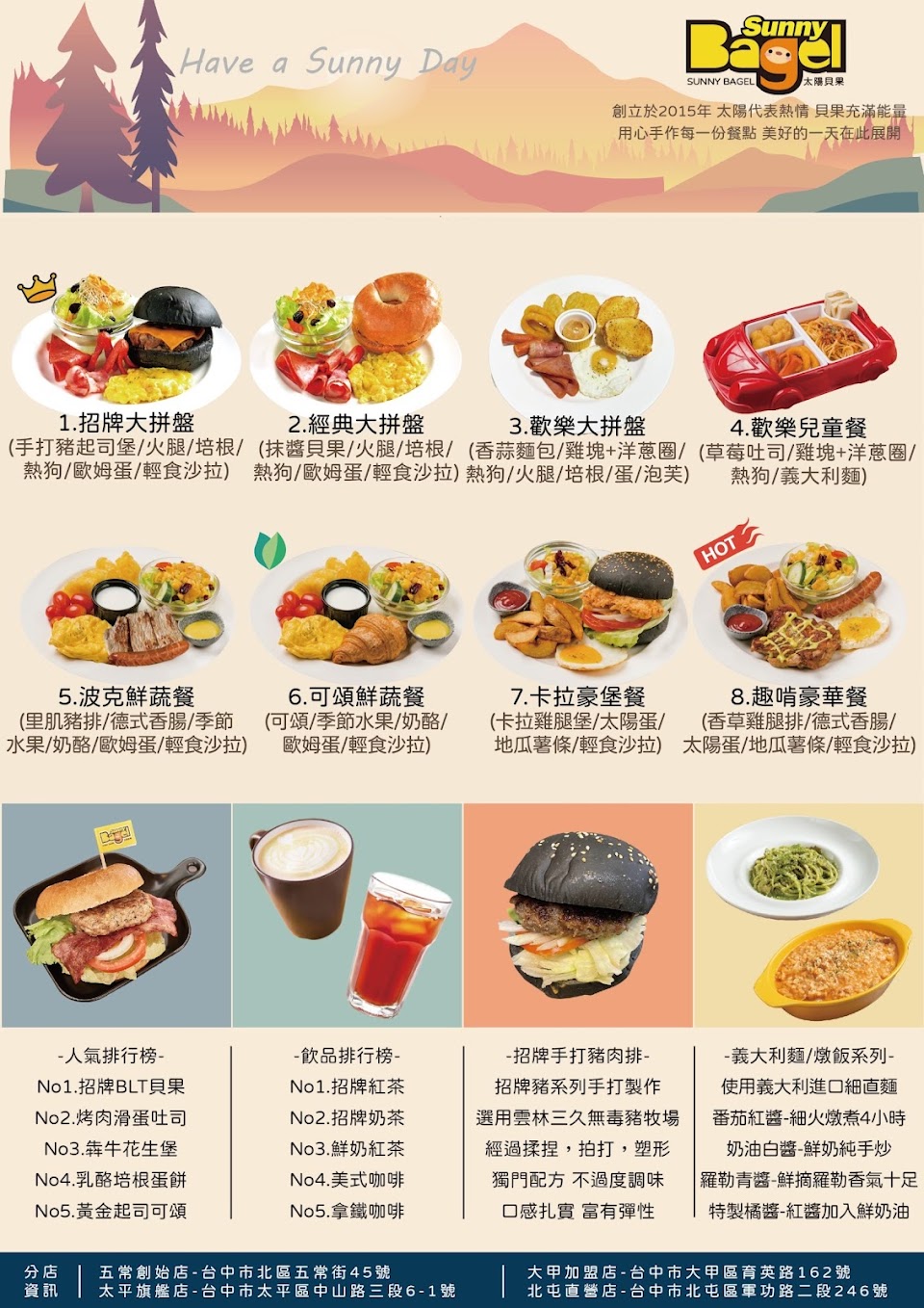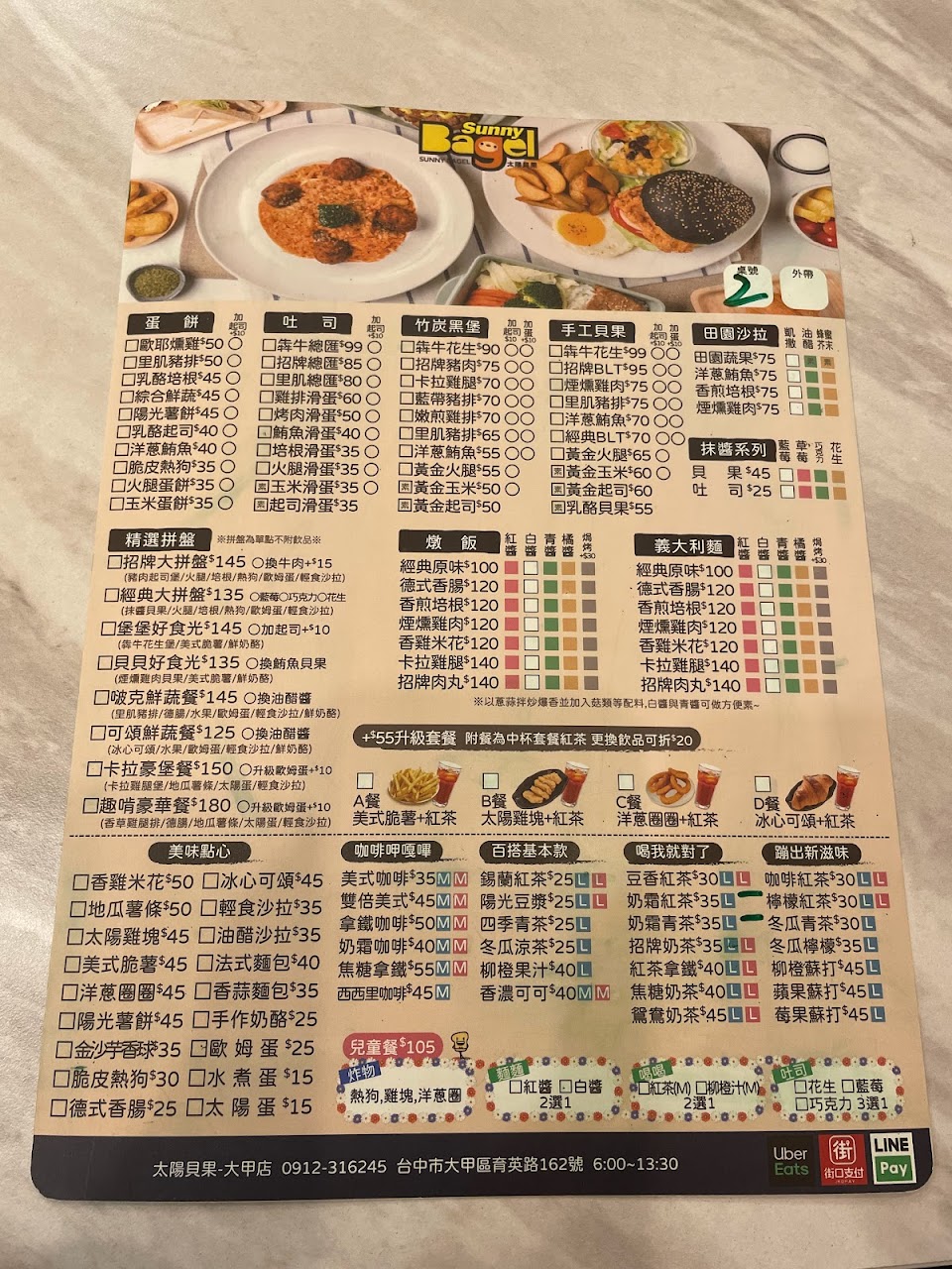 2024最新在地推薦餐廳的菜單_Sunny Bagel 太陽貝果-大甲店 早午餐 義大利麵 焗烤燉飯 大甲美食的菜單、圖片