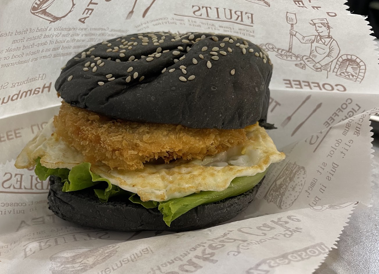 黑漢堡滿美味的?牛肉堡和卡辣雞都好吃?牛肉很香味道的很棒、卡辣雞肉也算大塊酥脆可口,但套餐的沙拉很難吃、雖然蔬菜新鮮但沾醬淋的太稀太少一整個都是草味、個人覺得很不好吃?建議換成凱撒醬或是和風醬,不然好歹優格醬至少濃一點不要這麼水、然後玉米跟脆片堆的太高了夾起來吃整個掉的到處都是(來吃兩三次都是同樣情況)很困擾?在想下次還是單點漢堡就好因為沙拉不符合喜好?,其他套餐附的太陽蛋半熟和地瓜薯條不錯吃、豆漿濃郁但不夠甜(應該是微糖吧),雞肉蛋餅也ok,偶爾會想來吃漢堡?早午餐的選擇之一
