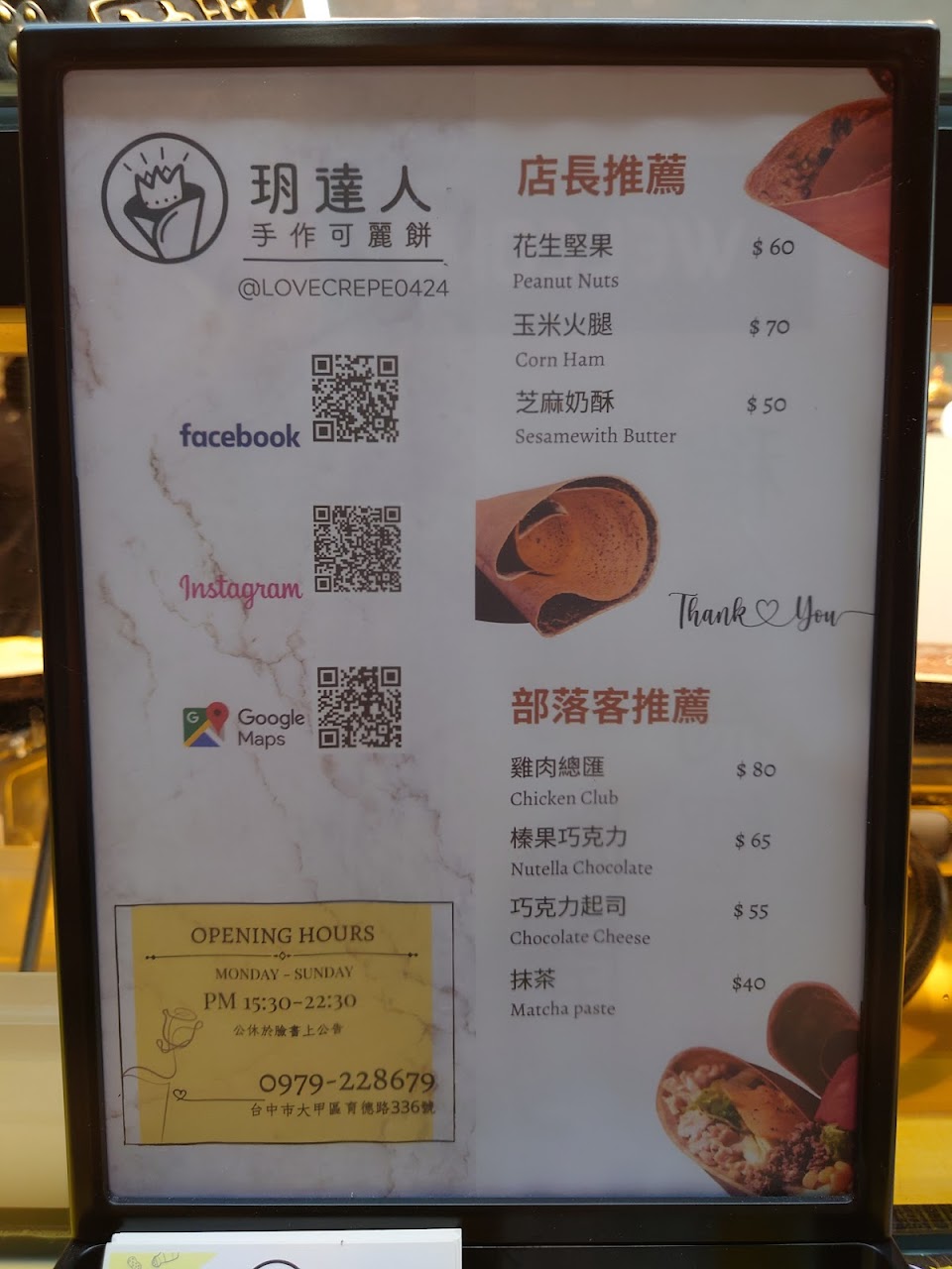 2024最新在地推薦餐廳的菜單_玥達人手作可麗餅-大甲店的菜單、圖片