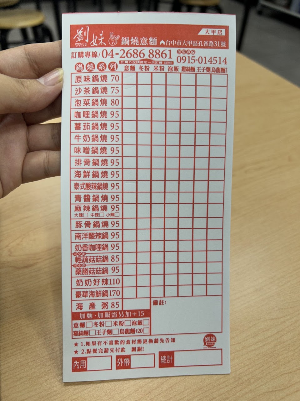 2024最新在地推薦餐廳的菜單_劉妹鍋燒意麵-大甲店的菜單、圖片