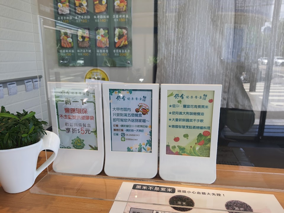 專門販賣健康餐盒的餐廳,裡面有少許座位,門口和店內有多肉植物擺設。