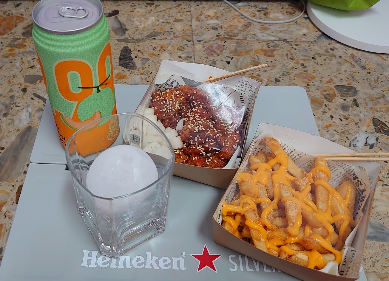 單點了韓式炸雞、薯條辣度甜度很適中~