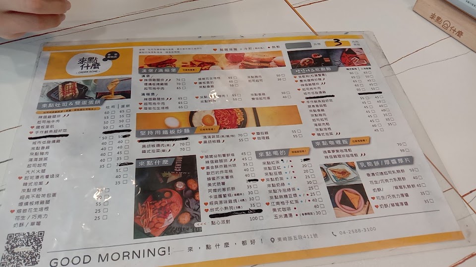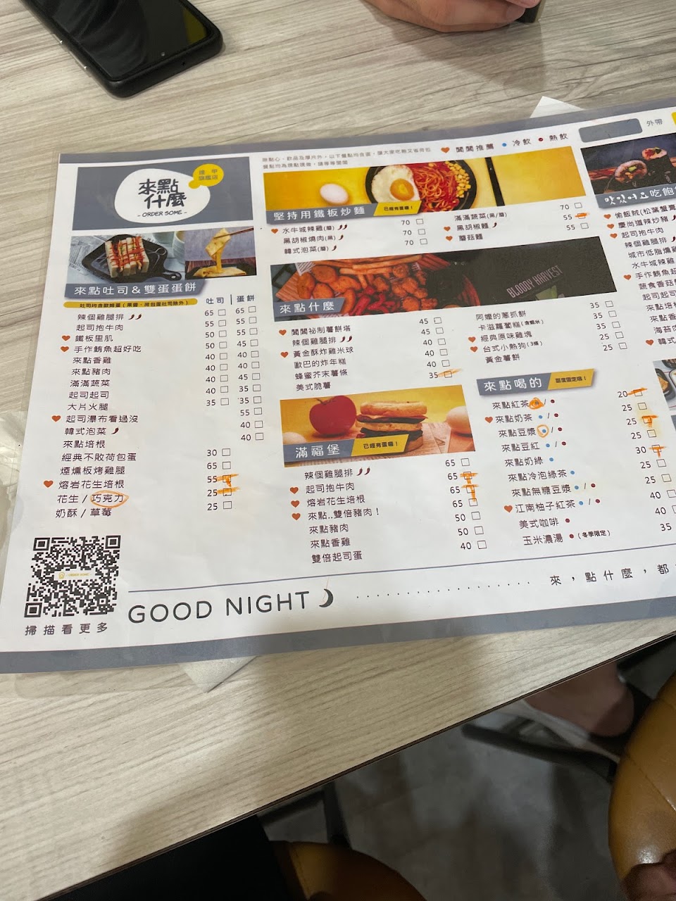 點餐是用QR code線上點,品項滿多的,而且還有一半早餐店沒有的海苔飯捲、飯糰、咖哩飯等品項,紅茶有別於一般的早餐店,有英式紅茶都味道,餐點還不錯吃,附近還蠻好停車的,唯一的缺點就是,店內蒼蠅還不少,要邊吃餐點邊趕蒼蠅!!