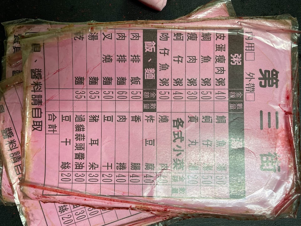 餐點的盛裝如果可以用瓷器的餐具將更好,熱熱的稀飯,湯麵用塑膠的餐具裝~感覺好毒喔!
