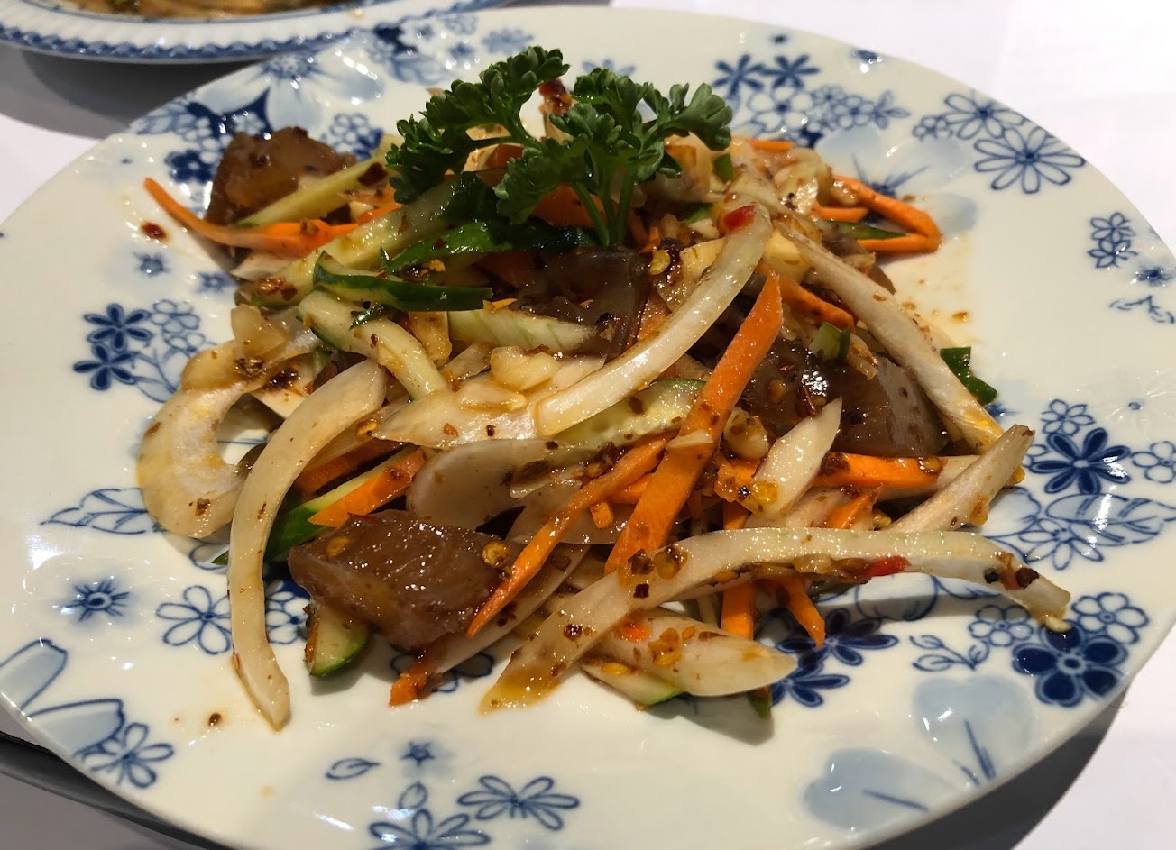 假日時間去新館,之前的環境比較有客家氣息,這次開店前就到達了,客家油雞好吃,個人覺得需要一些蘿蔔泡菜會更美味,鮮牛肉湯好好喝,清甜爽口肉質鮮嫩,紅燒牛筋很軟嫩,只是調味偏酸,醬料感覺是吃紅油抄手的味道。