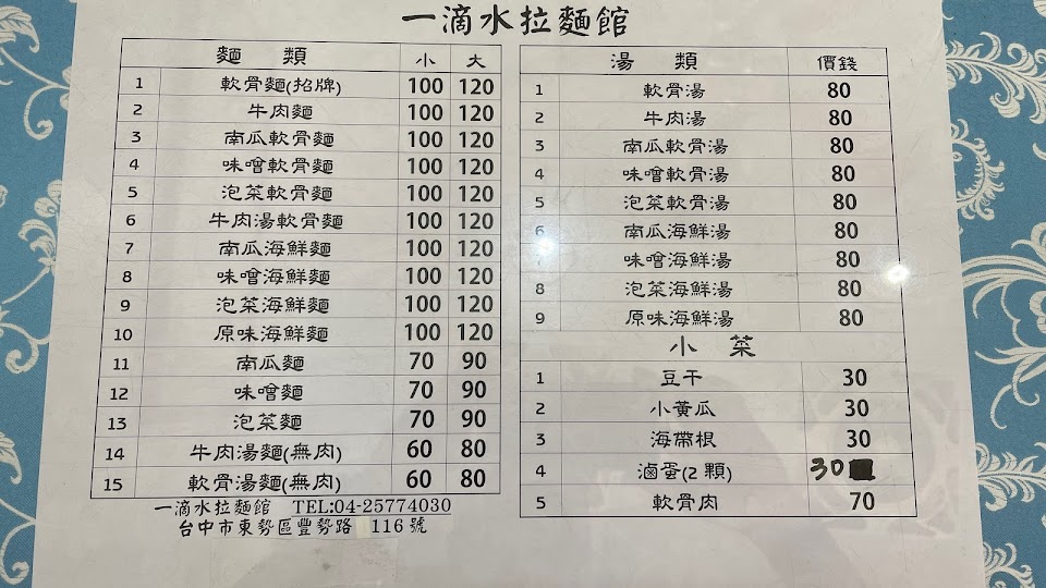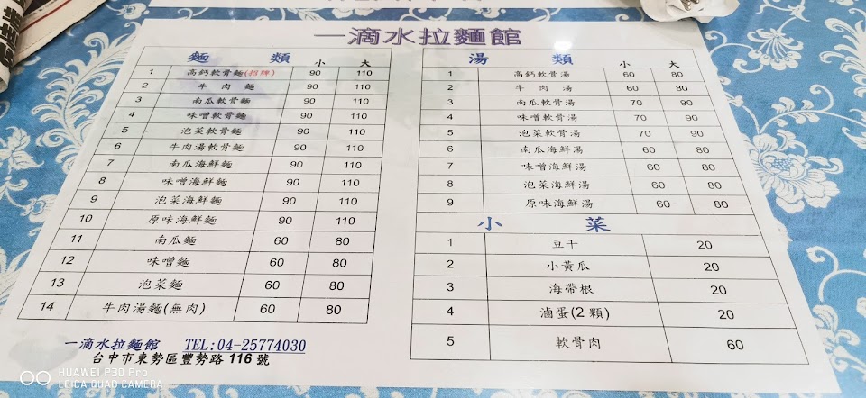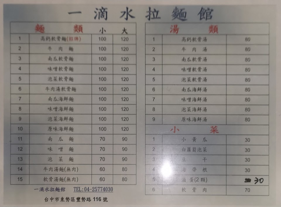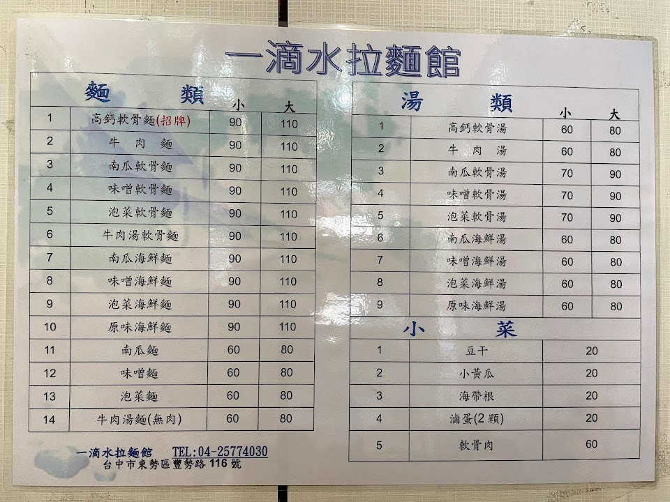 2024最新在地推薦餐廳的菜單_一滴水拉麵的菜單、圖片