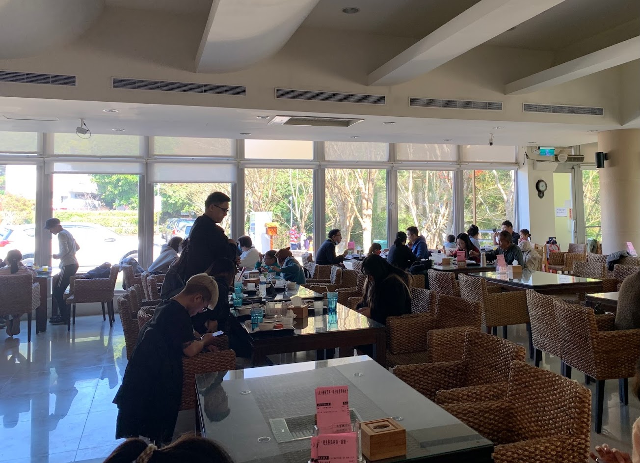 在東勢林場裡面的田媽媽餐廳環境很乾淨,可説是燈光美、氣氛佳,尤其是每一桌的距離都很適合,很適合疫情時代,用餐很放心。