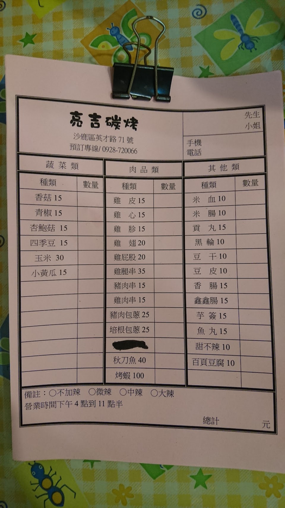 2024最新在地推薦餐廳的菜單_亮吉燒烤的菜單、圖片