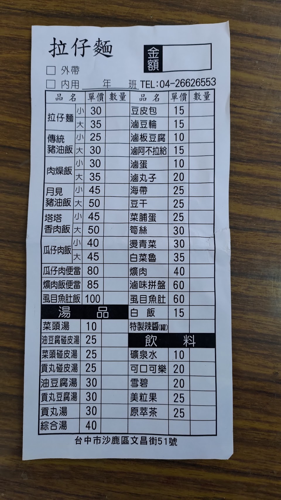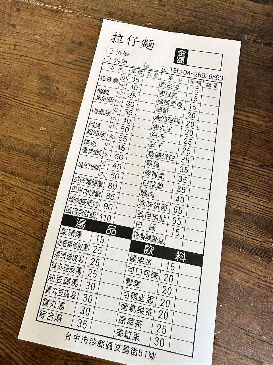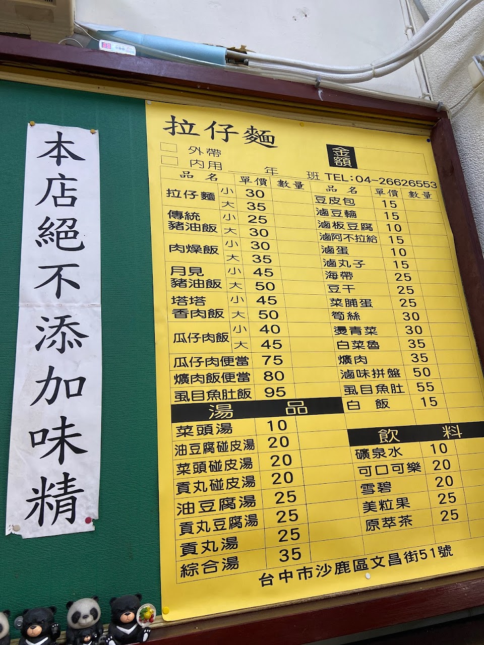2024最新在地推薦餐廳的菜單_沙鹿拉仔麵月見豬油飯的菜單、圖片