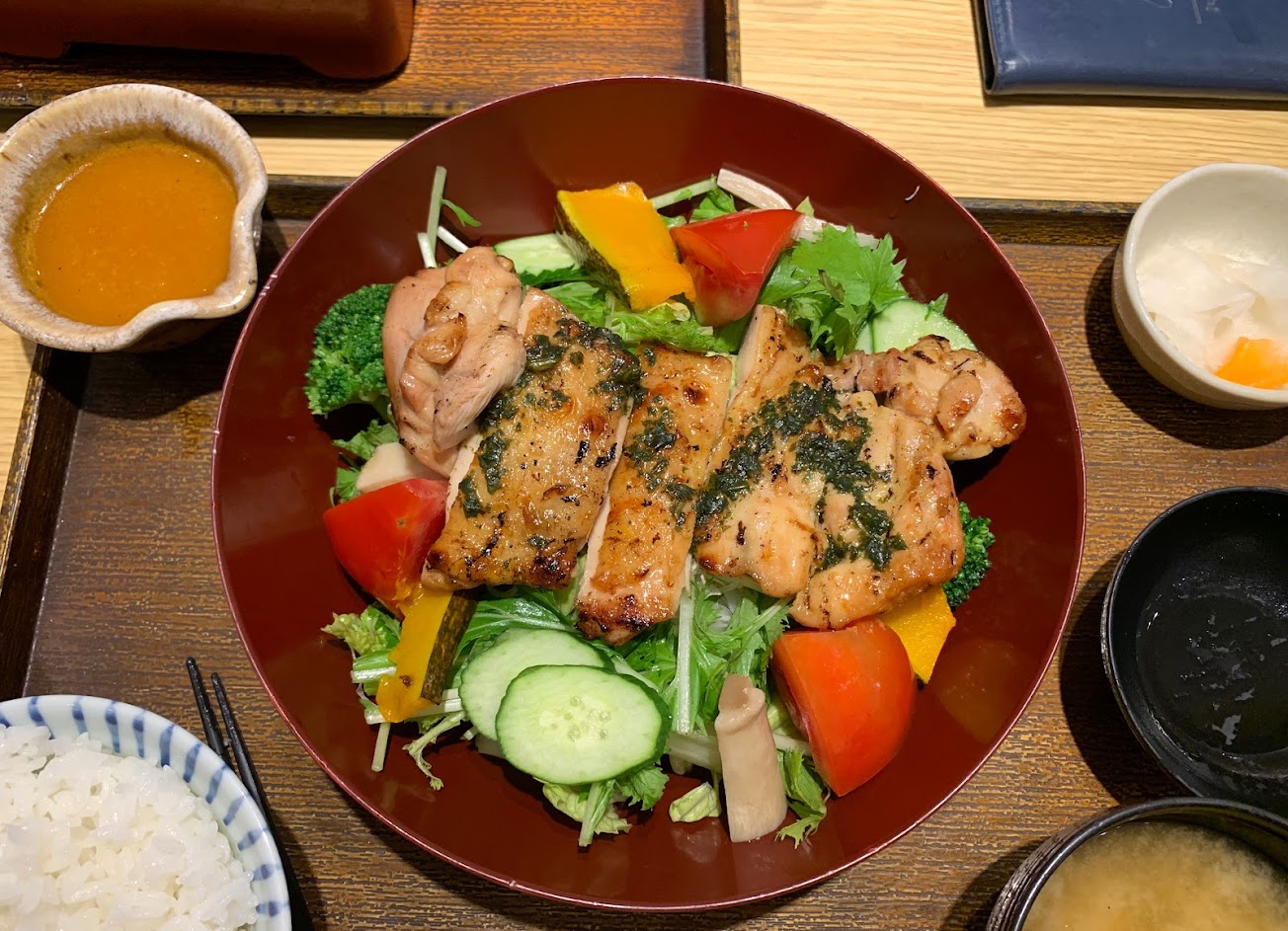 很多年沒吃大戶屋了,因為在日本吃真的比較便宜…今天吃了一個烤雞肉沙拉定食,很好吃,滿滿的新鮮蔬食非常爽口,很大一碗,默默地就吃完了(嚇?) …