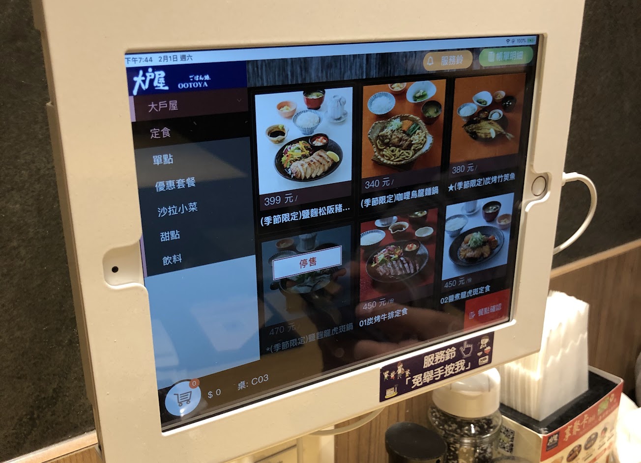 點餐、免費續的食物都可以直接在平板上加點,很方便~