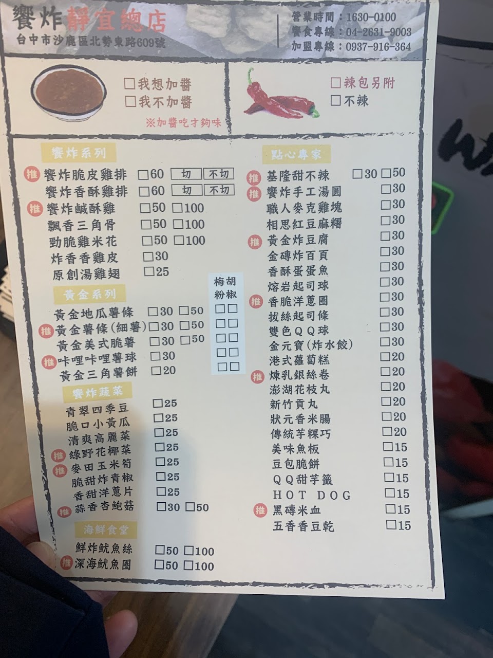 2024最新在地推薦餐廳的菜單_饗炸炸物食堂 靜宜總店的菜單、圖片