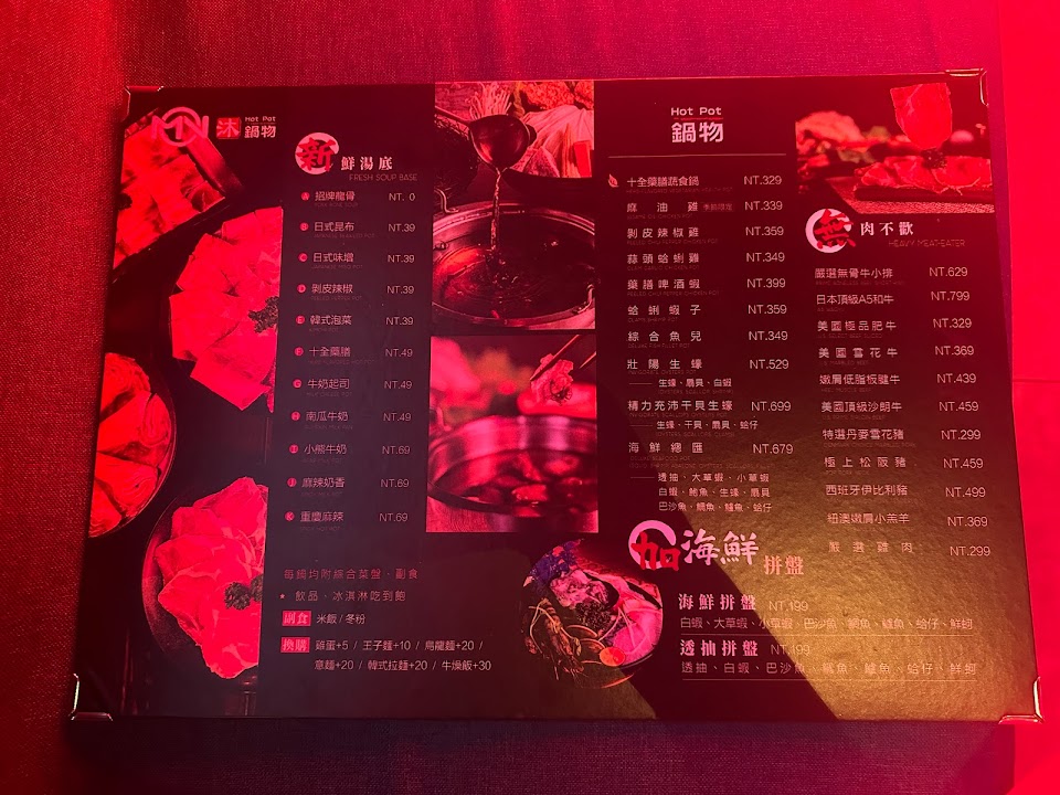 服務跟火鍋料都還可以,就是肉品的品質需改進: 我們各點紐澳小羔羊跟伊比利豬,但都沒有味道,感覺是重組肉……..這價位,我會希望吃到肉應有的味道