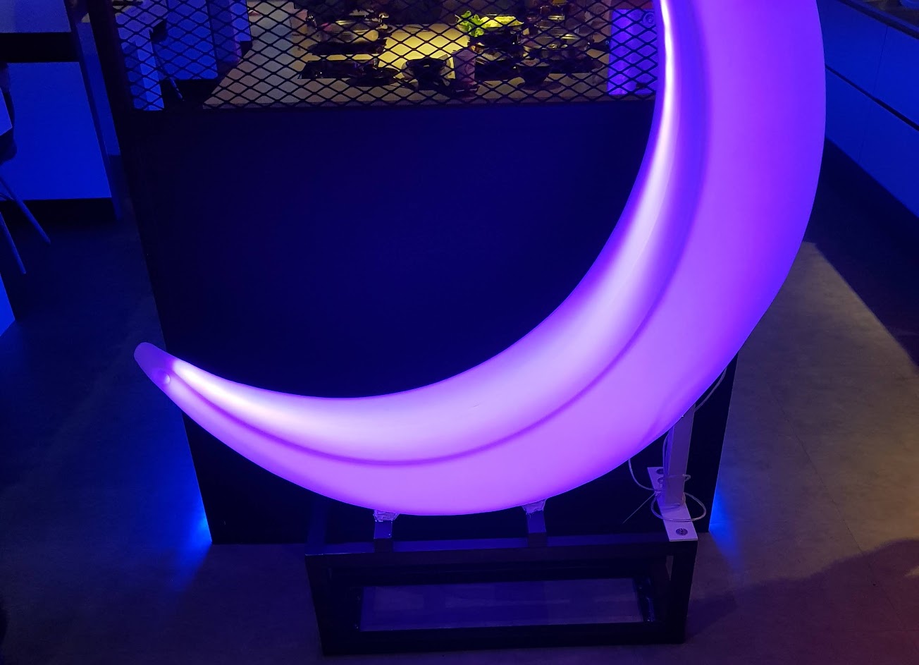 設有桌面爐並以霓虹燈點綴的休閒餐廳,專賣內含肉品、海鮮和蔬菜的火鍋料理。