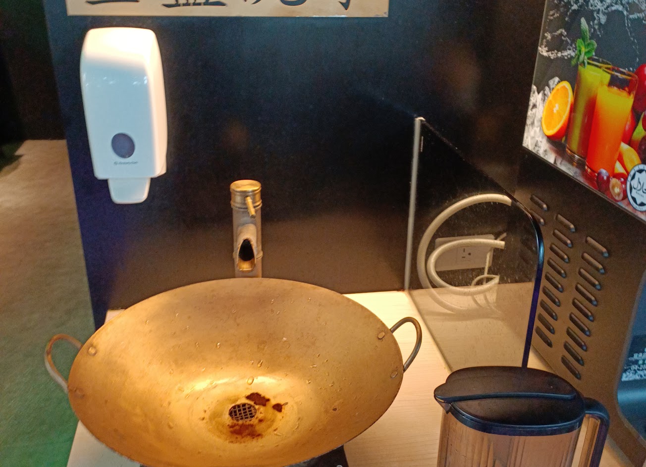 配料區豐富,貼心準備洗手台