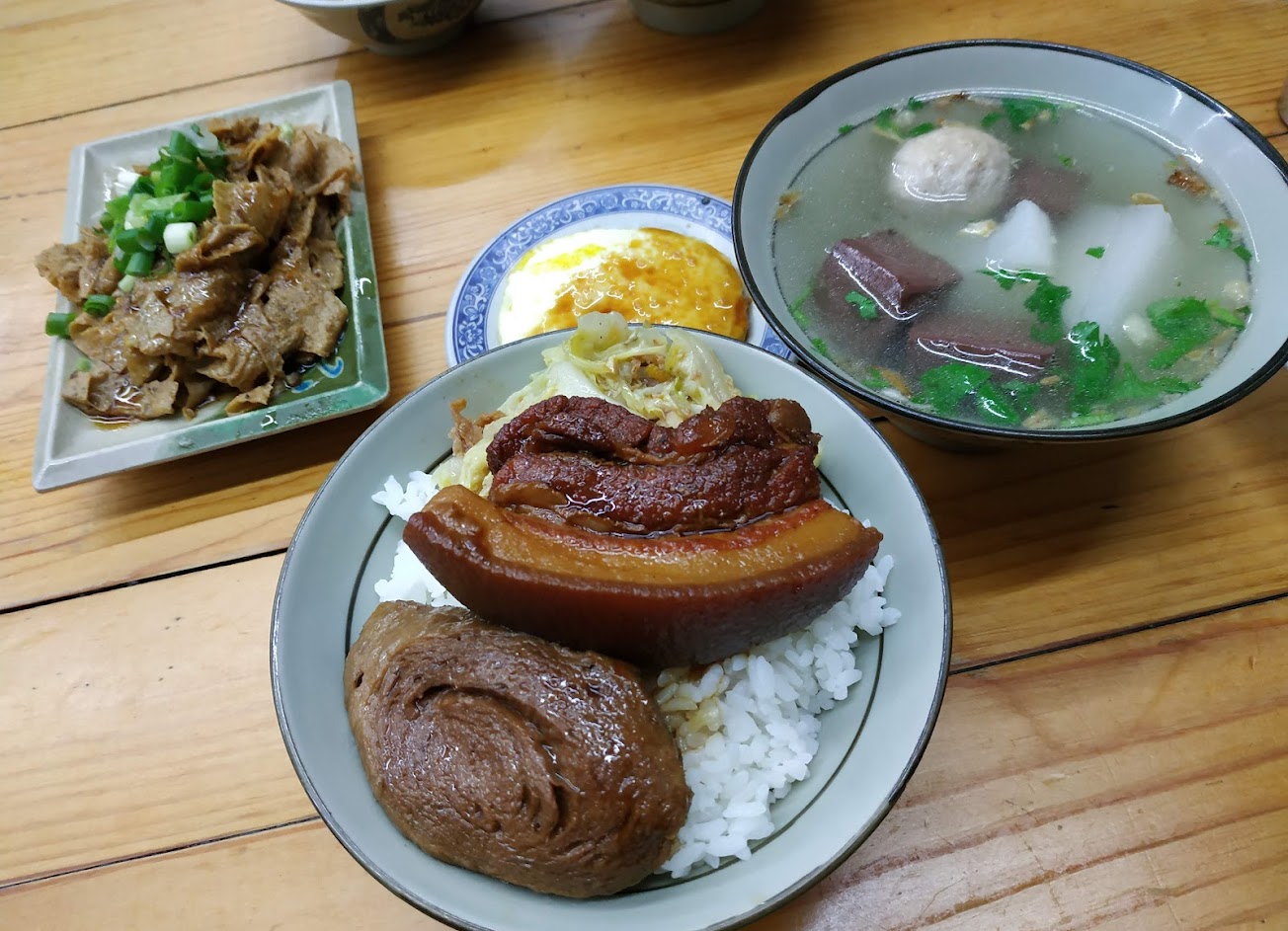 CP值超低的店家: 服務:唯一不低分的選項,一進門有招呼印象就算不錯,但仍美中不足的地方是站前台的很喜歡滑手機而忽略顧客需求。 餐點:0分,爌肉飯一碗70元我還以為是便當,滷肉飯45元。。。我還以為我到了天龍國,不禁懷疑是不是錯覺,爌肉飯味道平平,荷包蛋焦邊又冰冰涼涼的,滷肉飯吃了讓我想當場撞牆,被騙一次就好。。。 價錢:飯類是天龍國價錢。。 環境:非常糟糕一進門想離開但又硬着頭皮坐下來,一進門就一股異位,桌上黏的程度已經到不需要黏蒼蠅紙。 整體評論:寧願吃泡麵也不願在上門的店家。
