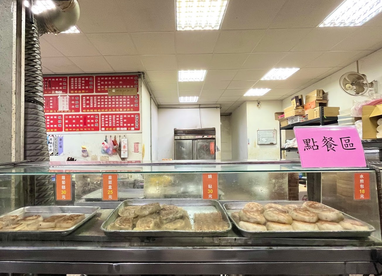 早上七點,櫥窗內的鍋貼跟水煎包看起來很好吃,場內唯一阿姨雖然回鍋小煎但鍋貼還是冷的…如果可以微波應該更快又熱。阿姨感覺人很好但似乎一個人忙不過來。