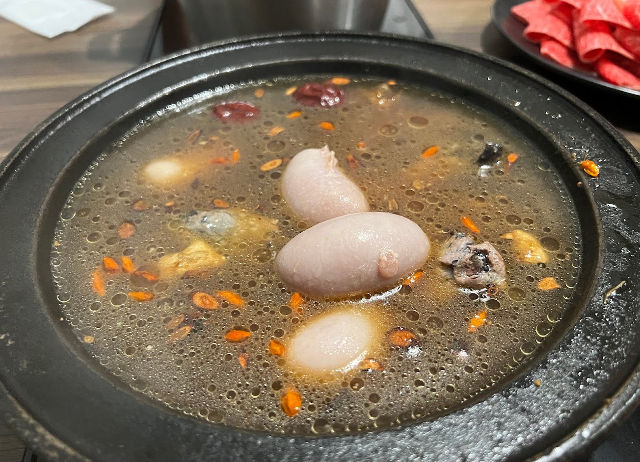 湯頭鮮甜好喝,食材新鮮、自助蔬菜吧種類選擇多很棒,推燒酒蛤蜊烏骨雞,霜淇淋是芒果口味的好吃?