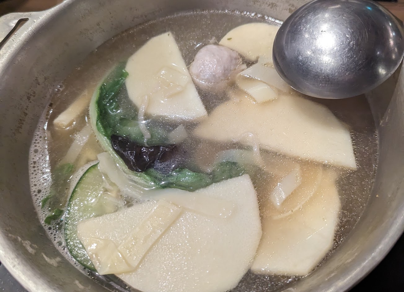 室內比想像中壅擠,想離開座位去挾菜,還要小心擠到後面顧客…但除此之外,湯頭表現不錯,有很多少見的湯底,這次點烏骨雞湯,肉質鮮嫩但沒很多,比起來點牛三寶鍋的肉真的比較多哈哈。蔬菜自助,有免費飲料跟冰,最好事先預約位子,不然客人真的是多。
