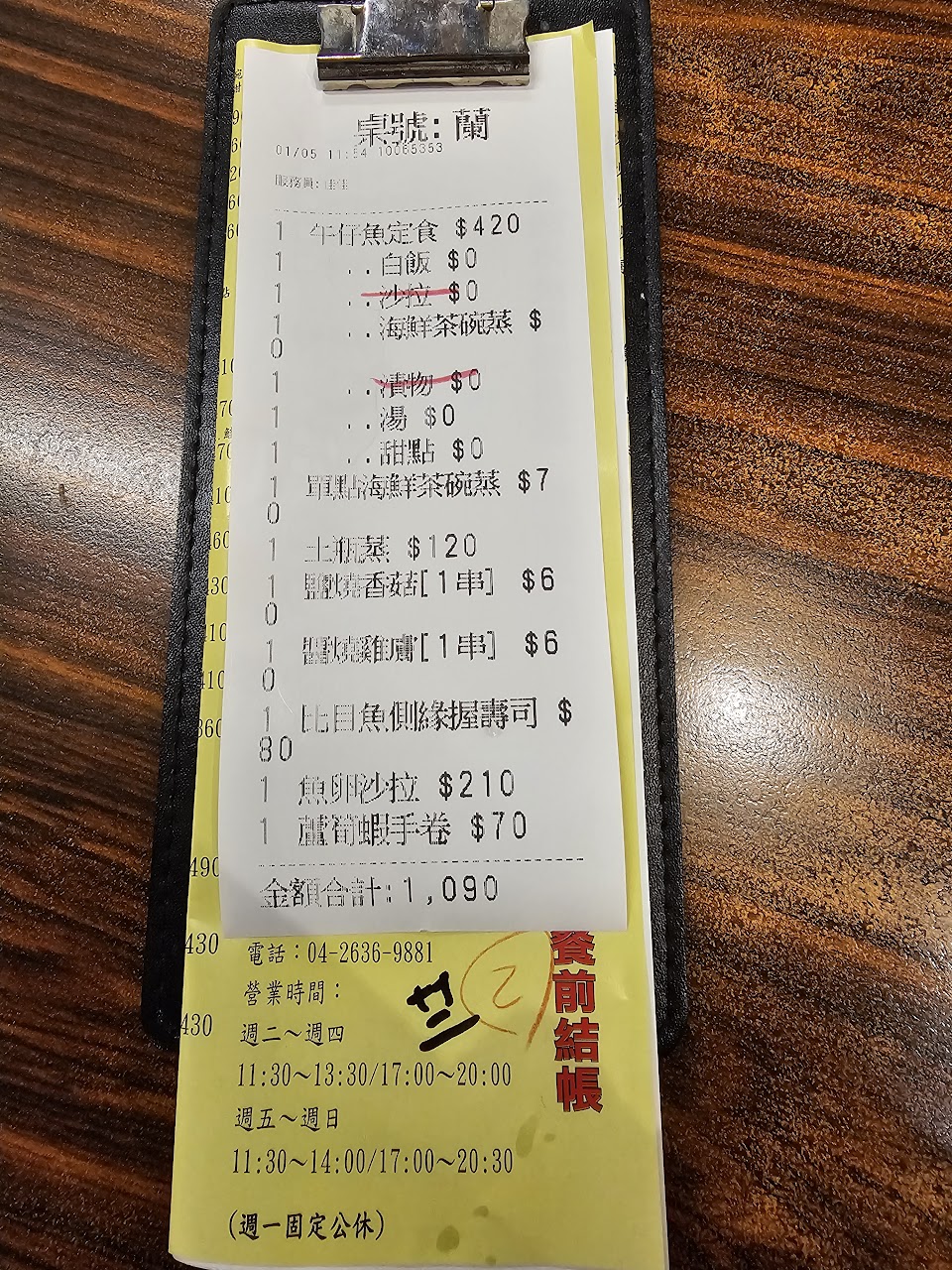 ?服務:上菜速度不錯,前面他們先上別桌的,稍微等了一下,後面上我們的都很快,美中不足的是,我們有點鮭魚炒飯定食,先上了定食的小菜,然後上其他的菜,最後才是鮭魚炒飯⋯