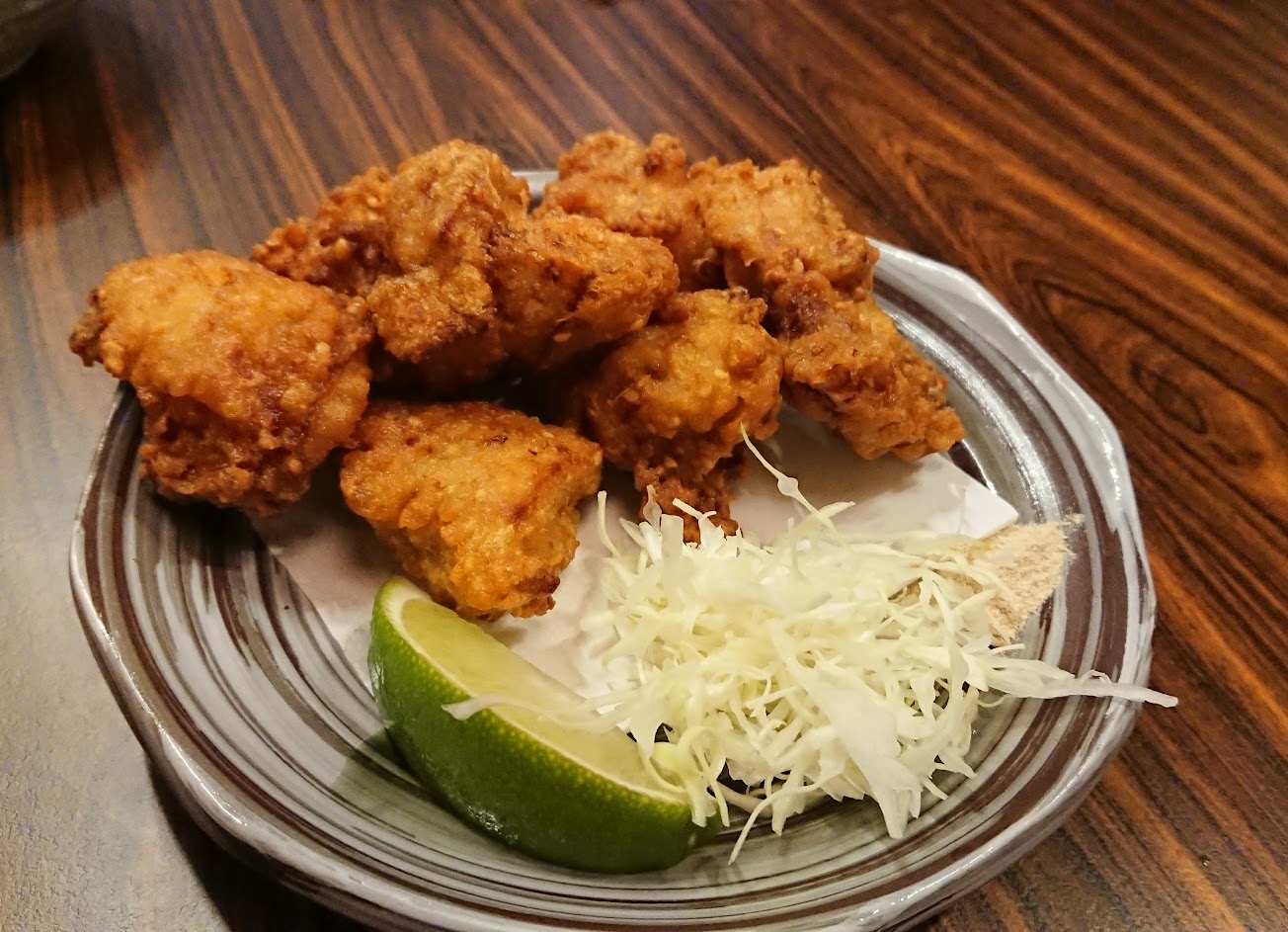 很有日式氣氛,有停車位。對折還有一隻中指長的超大生魚片,唐揚雞外皮酥脆裡面多汁軟嫩,很喜歡~~