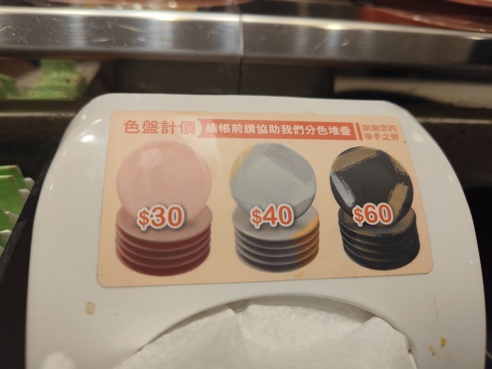 基本上就是中規中矩的壽司店,60元盤子除了厚鮭魚跟干貝外其他的都不算好吃,最划算大概就是30元燻鮭魚壽司跟40元鮭魚壽司