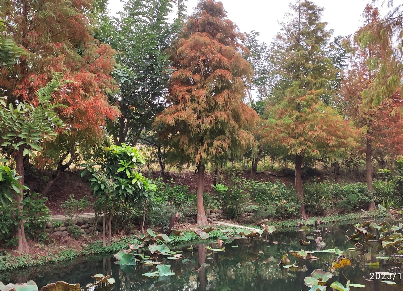 園區內的環境樹木綠意盎然?,還有著古色古香的建築?,近期也剛好是落羽松的爆發季???,這樣拍起來不但有意境美感?,也很有文青風格呢?