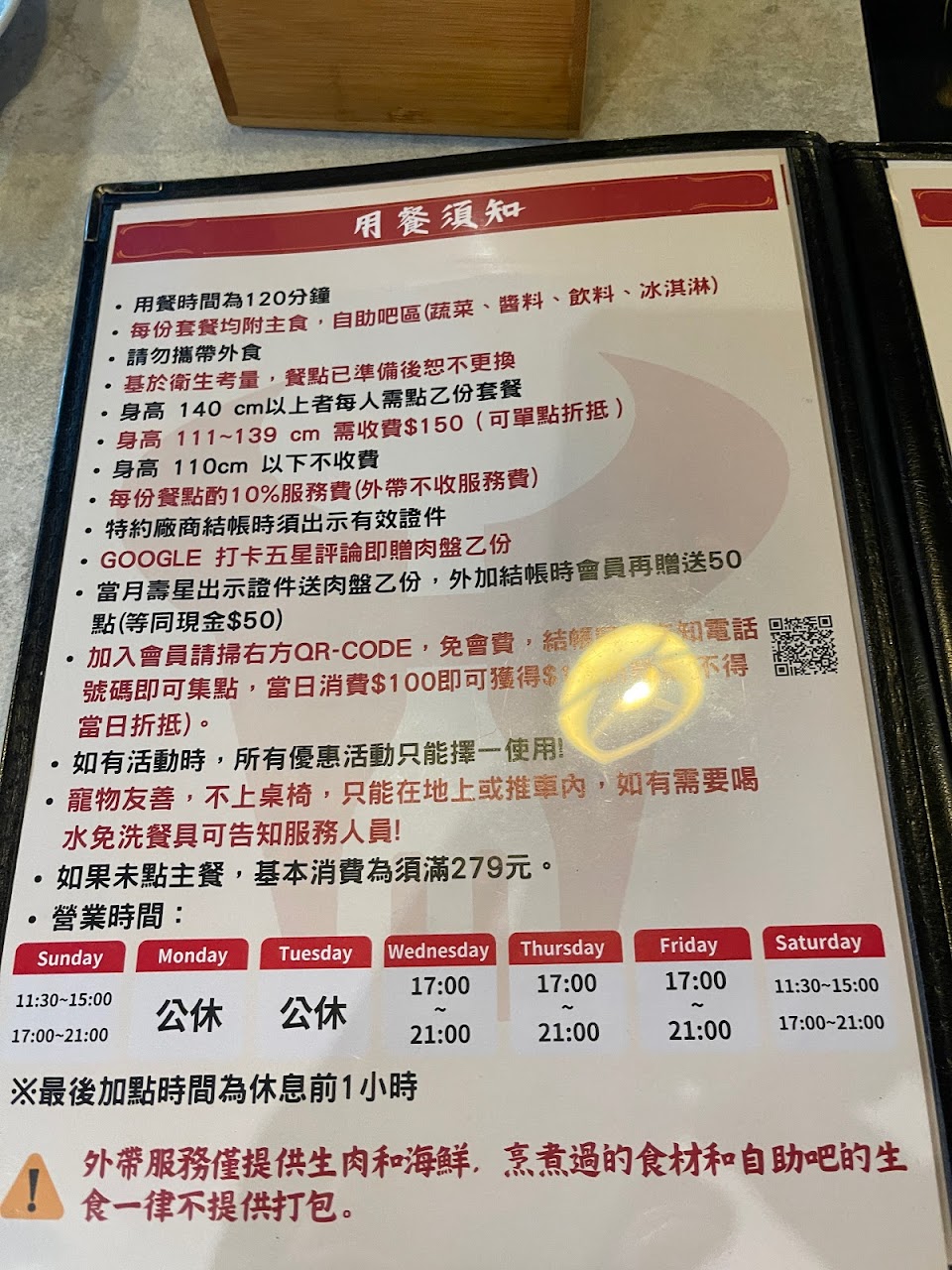 | 星期日 | 11:30–15:00 17:00–21:00 |