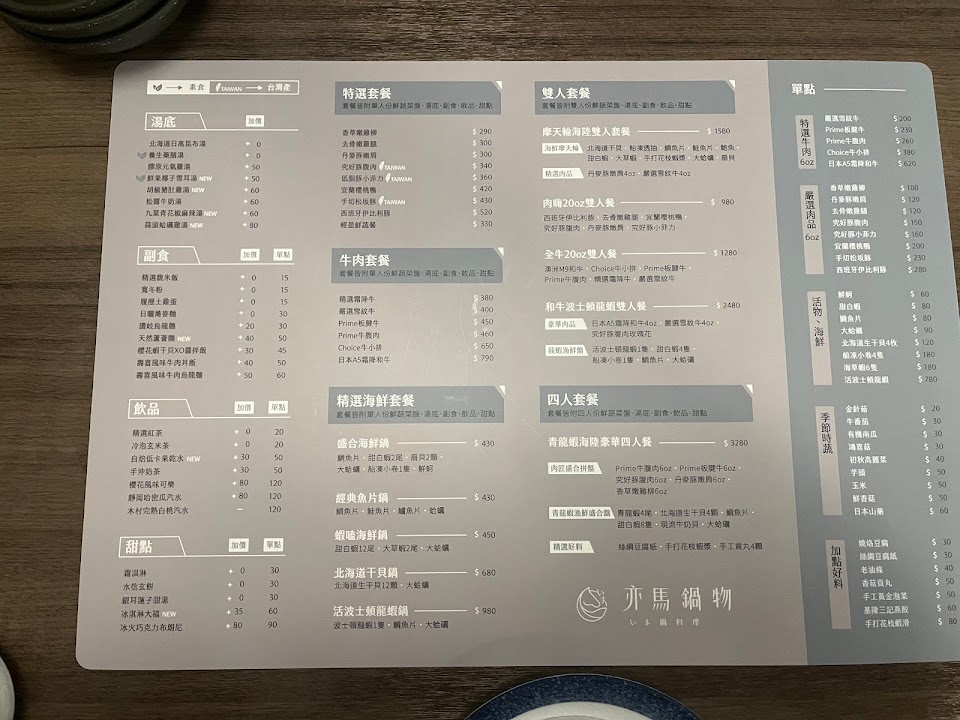 2024最新在地推薦餐廳的菜單_亦馬いま鍋物的菜單、圖片