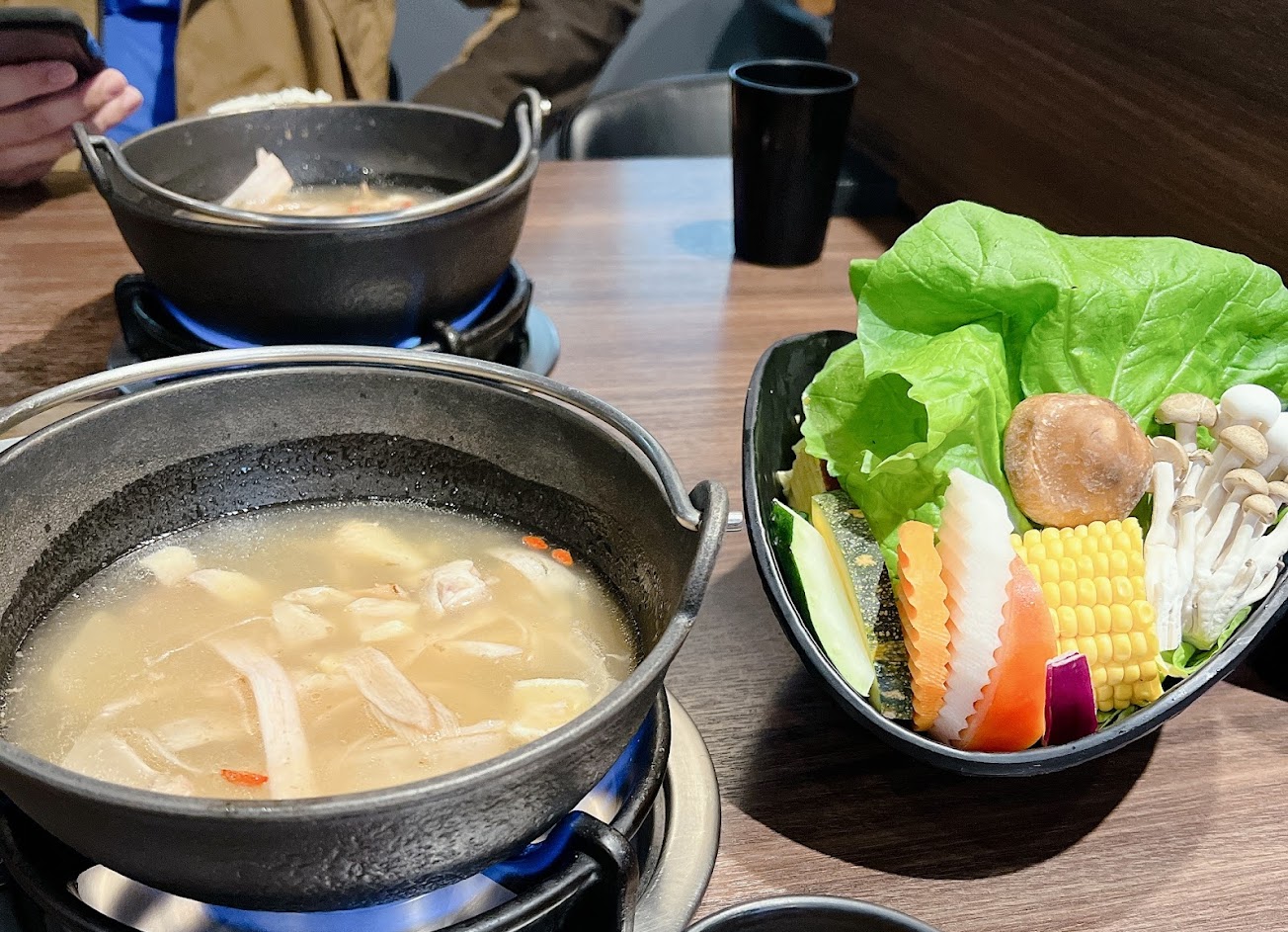 醬料區擺放看起來很簡單俐落, 實際上有一堆的小蚊子在飛, 餐點內容有點貧乏不知道在吃什麼, 湯底點了當日主廚特選,是牛蒡雞湯, 加價69但裡面都是碎雞屑,一堆皮, 幾乎沒有吃到完整的一塊雞肉。