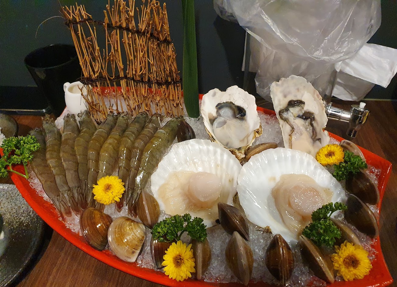 豬五花、牛肉尚可,就是很薄又碎, 899附的海鮮新鮮,有蛤蜊、干貝、軟絲 種類多但量少得很可憐。