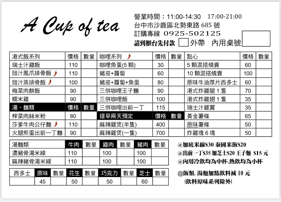 2024最新在地推薦餐廳的菜單_A Cup Of Tea港式飲料小吃的菜單、圖片