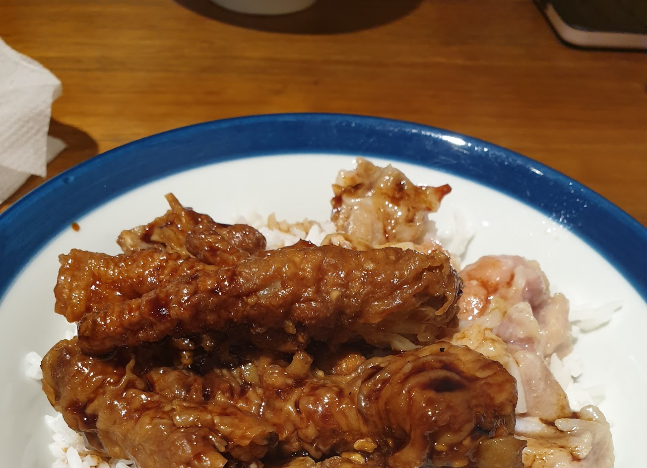 這次吃鳳爪排骨飯,醬汁微辣帶香?,很好下飯,排骨多瘦肉骨軟可吃?。