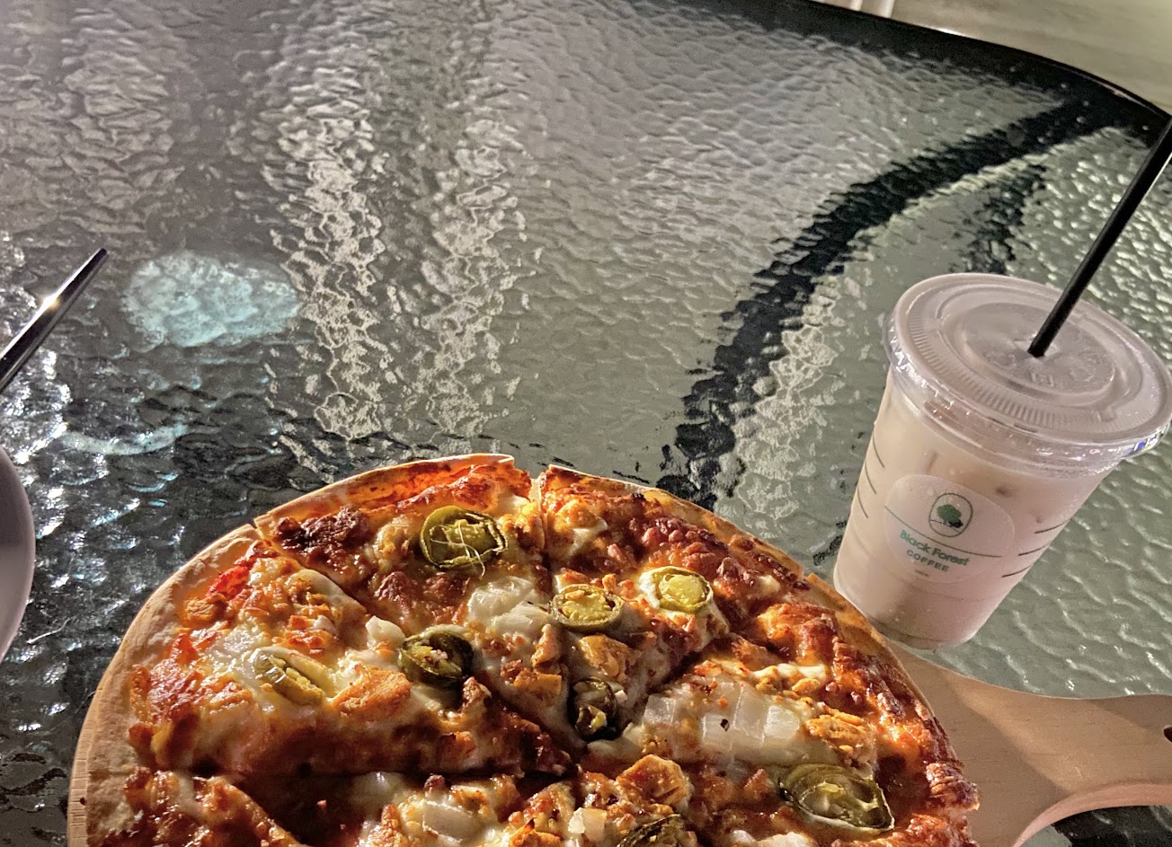 優點是離黑森林很近可以順便吃飯、場地裝潢很美、旁邊是停車場很多車位、出餐快、夜景很棒看得到很大片的夜景?