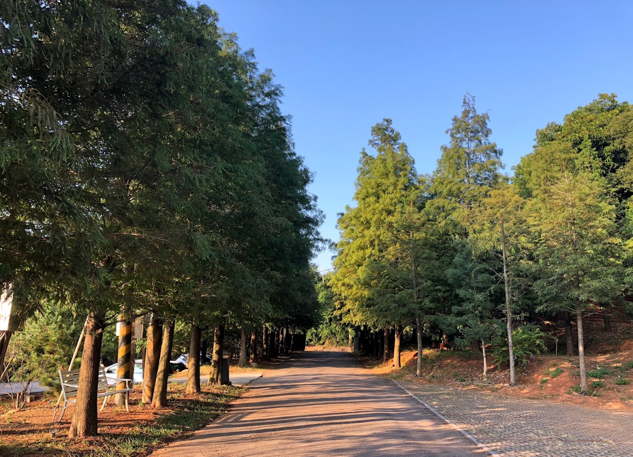 位置隱密,但也因此抵達時會有一種世外桃源感,拐個彎,一進入口,高聳的落羽松坐落著兩旁,氣勢磅礡的迎接著你,只可惜可能因為前陣子下雨的關係,沒有欣賞到艷紅美景,但也有了再訪的期待!
