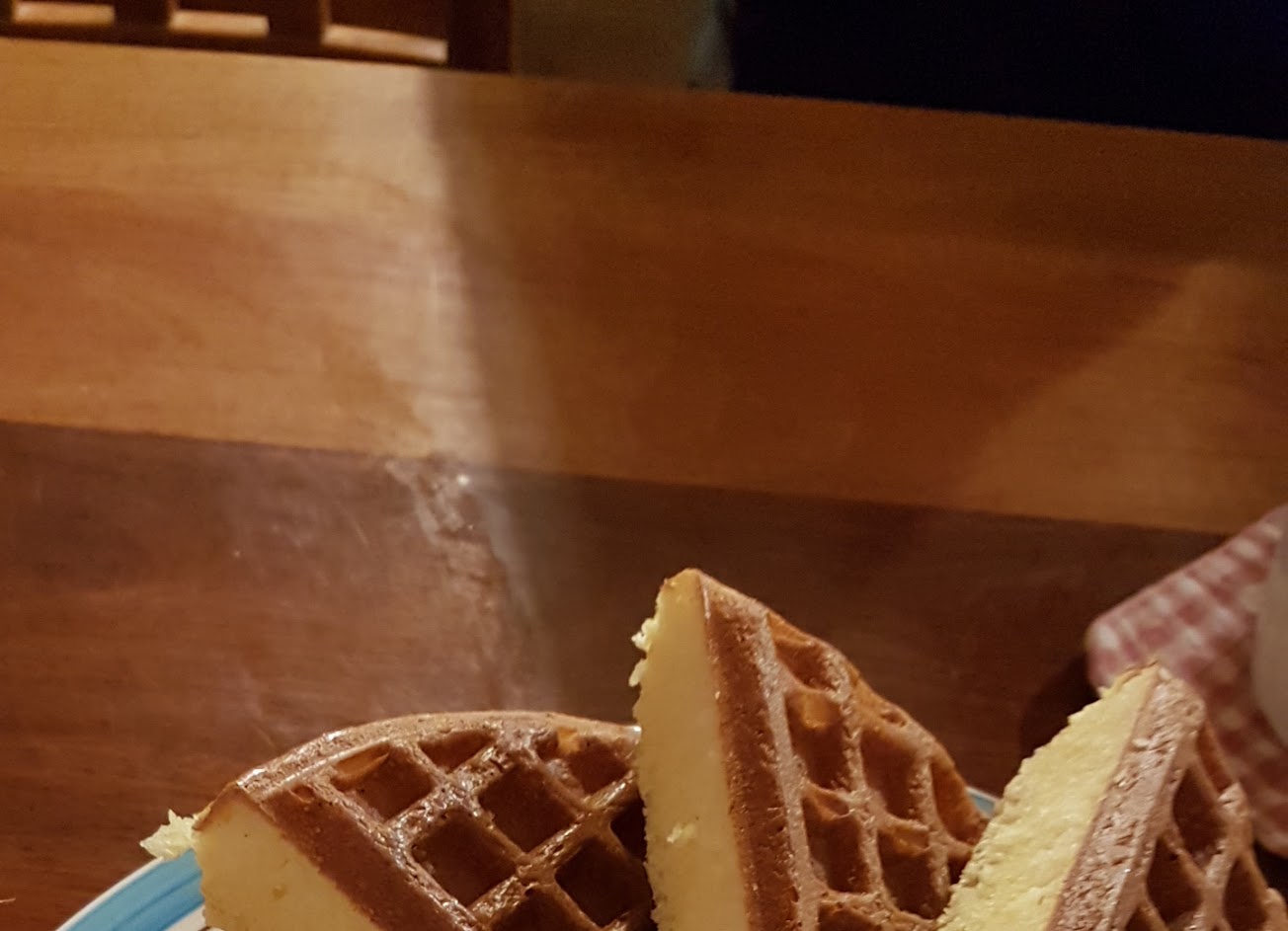 鬆餅厚度比一般景觀咖啡廳來的厚又綿密。適合小朋友。咖啡還有可愛的拉花。