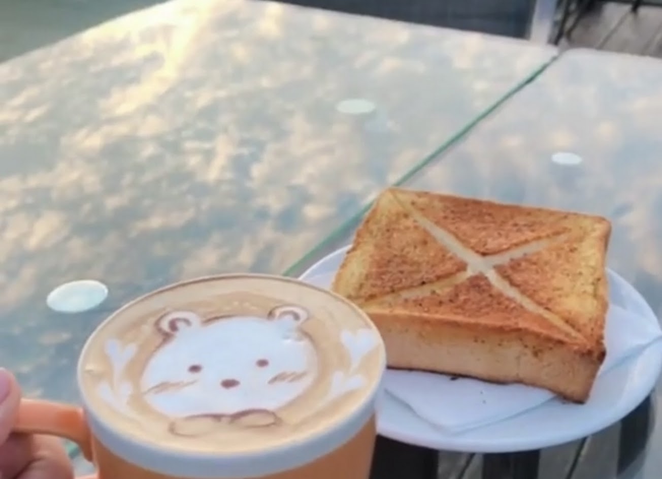 設有清幽露台的愜意咖啡廳,專門供應披薩、咖啡和鬆餅等療癒美食。