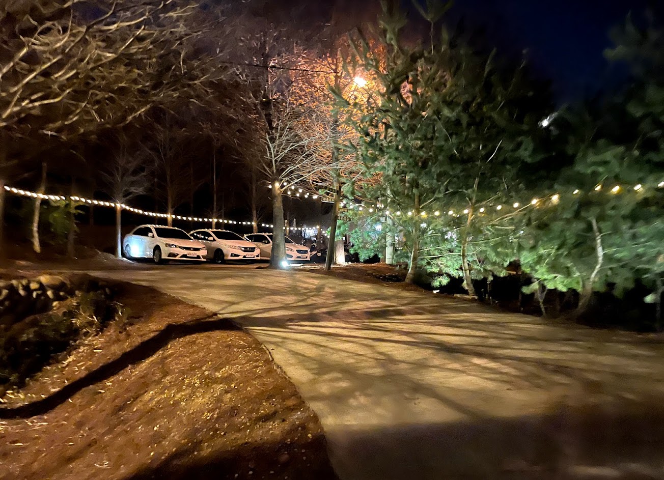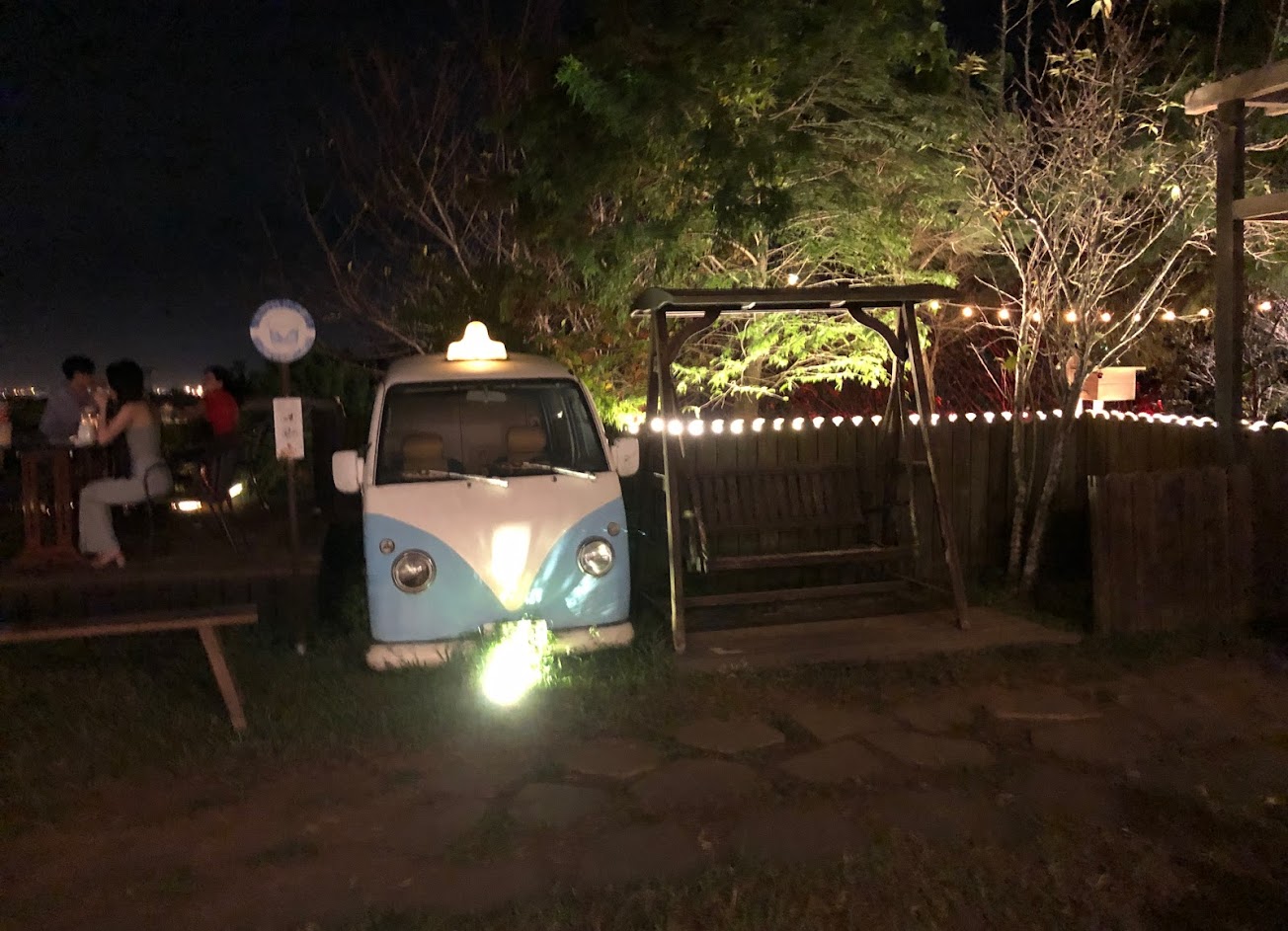 戶外停車的風景用燈串佈置,真的很美