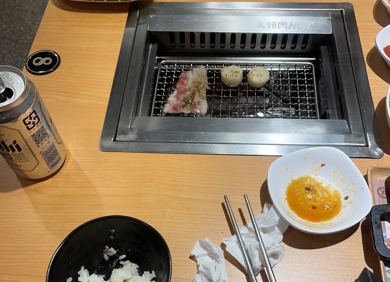店裡面非常熱,完全無法久待的熱,一進門有股不好聞的味道。我們8:45分進來,從餐點到結束我們只想在40分鐘內吃一吃快離開(包含送餐和食物烤熟)
