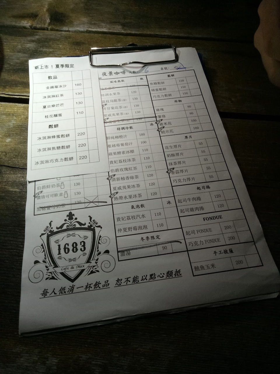 低消一杯飲料一個人都在100左右 蚊子有點多 店家有提供防蚊液 還有一盞營燈 是蠻有氣氛的 廁所也很乾淨 重夜景