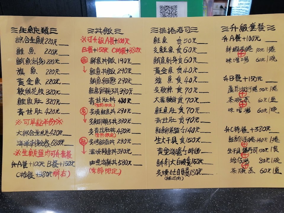 之前經過都很多人排隊,趁連假(10/9)終於有機會在這邊用餐,不知道是不是因爲在漁港吃海鮮,覺得真的新鮮特別好吃,魚湯的味道很鮮美,鮭魚肚的生魚片也比在其他市區壽司店的油花還要豐富,還有我最愛的鮮蝦手卷,只有生菜跟兩隻蝦,沒有飯也沒有苜蓿芽的那種,超級大加分!個人不喜歡有飯的手卷?整體印象很深就是很美味,可惜我們去的那天有看到幾隻蒼蠅在飛,但因為太好吃還是給滿分~ …