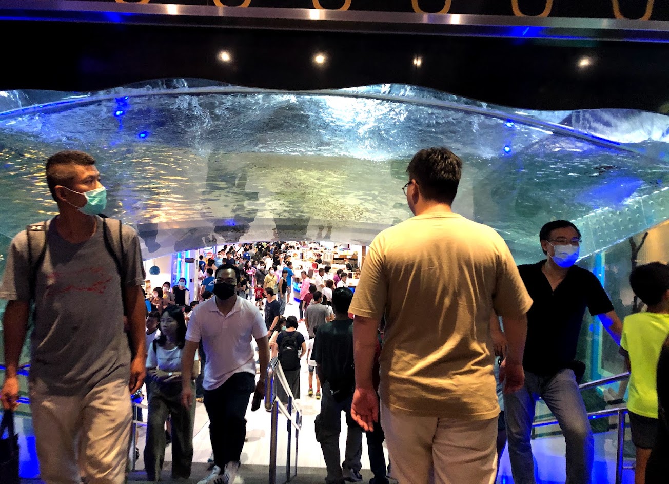 路邊服務區,有加油站、室內美食廣場、街頭藝人和水族館。