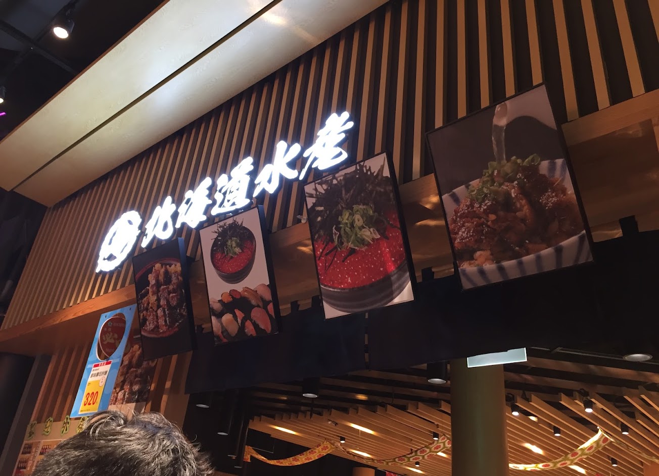 《北海道水產》,主要販售日本生魚片、壽司?、丼飯等。