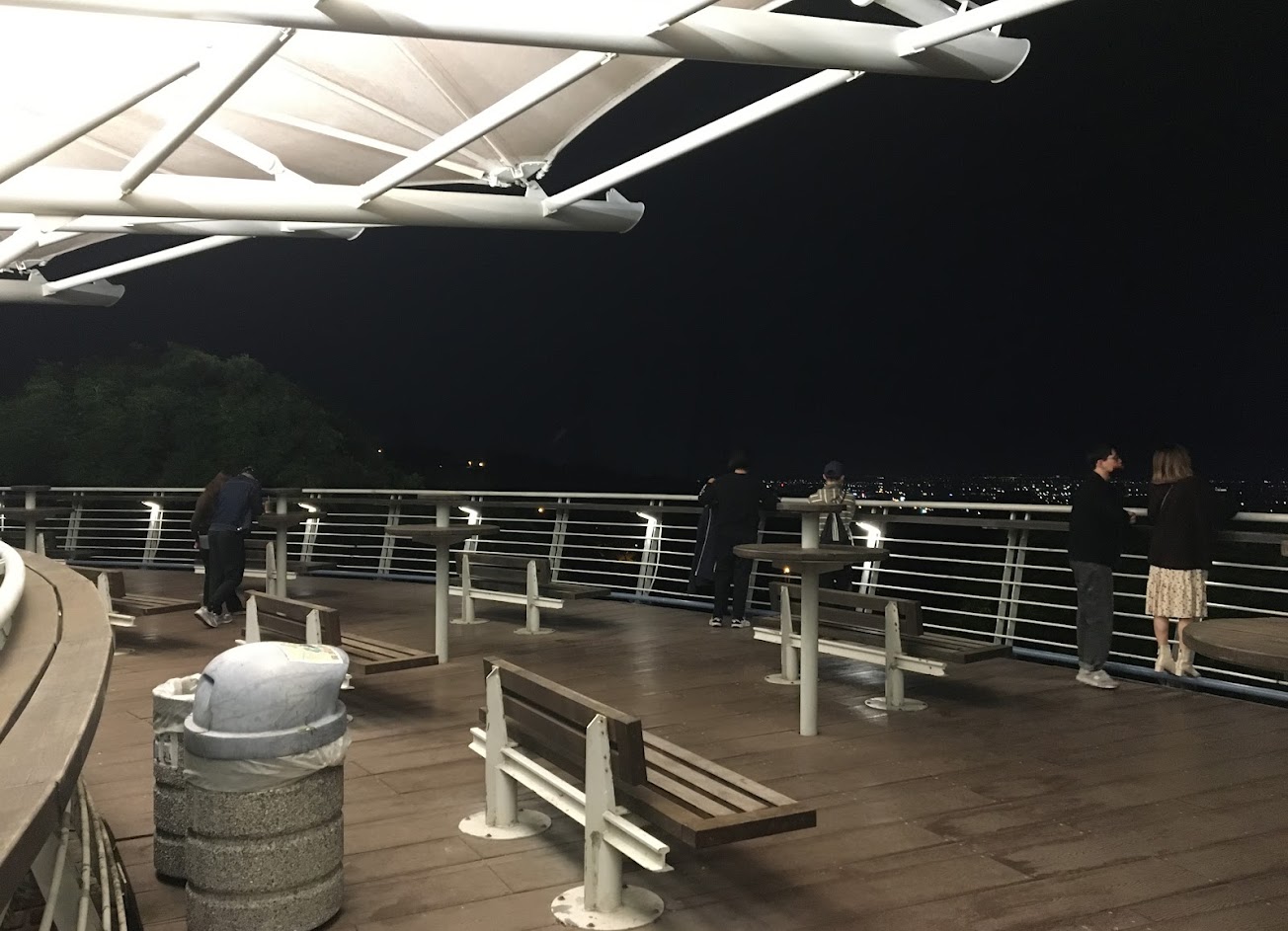 夜景很美環境乾淨整潔,公共廁所乾淨,賞景座位設計還不錯,欄杆邊也有設立小木板,就算站著觀賞也可以放置小物品和飲料。