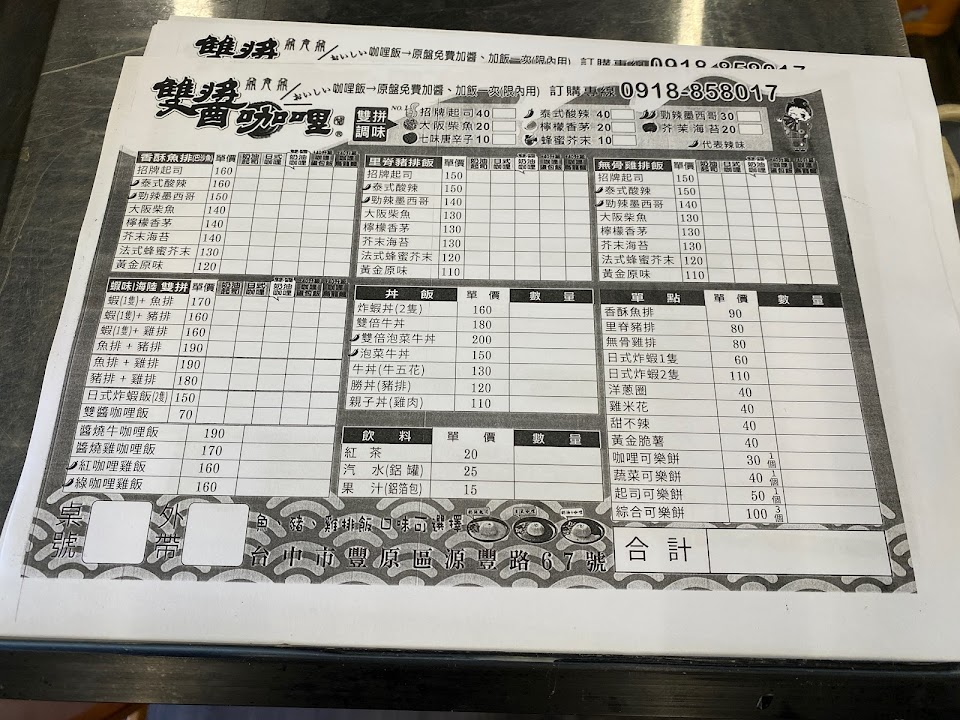 2024最新在地推薦餐廳的菜單_雙醬咖哩豐原店的菜單、圖片